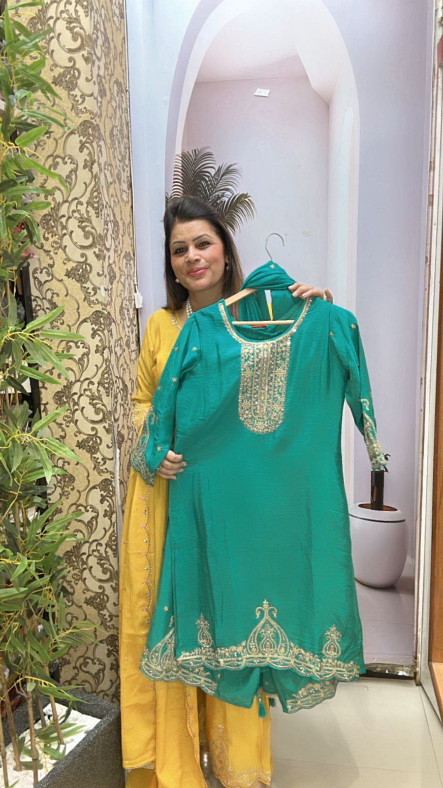 💚 Add a refreshing touch of elegance to your wardrobe with this teal green embroidered suit, beautifully designed for festive and party wear.