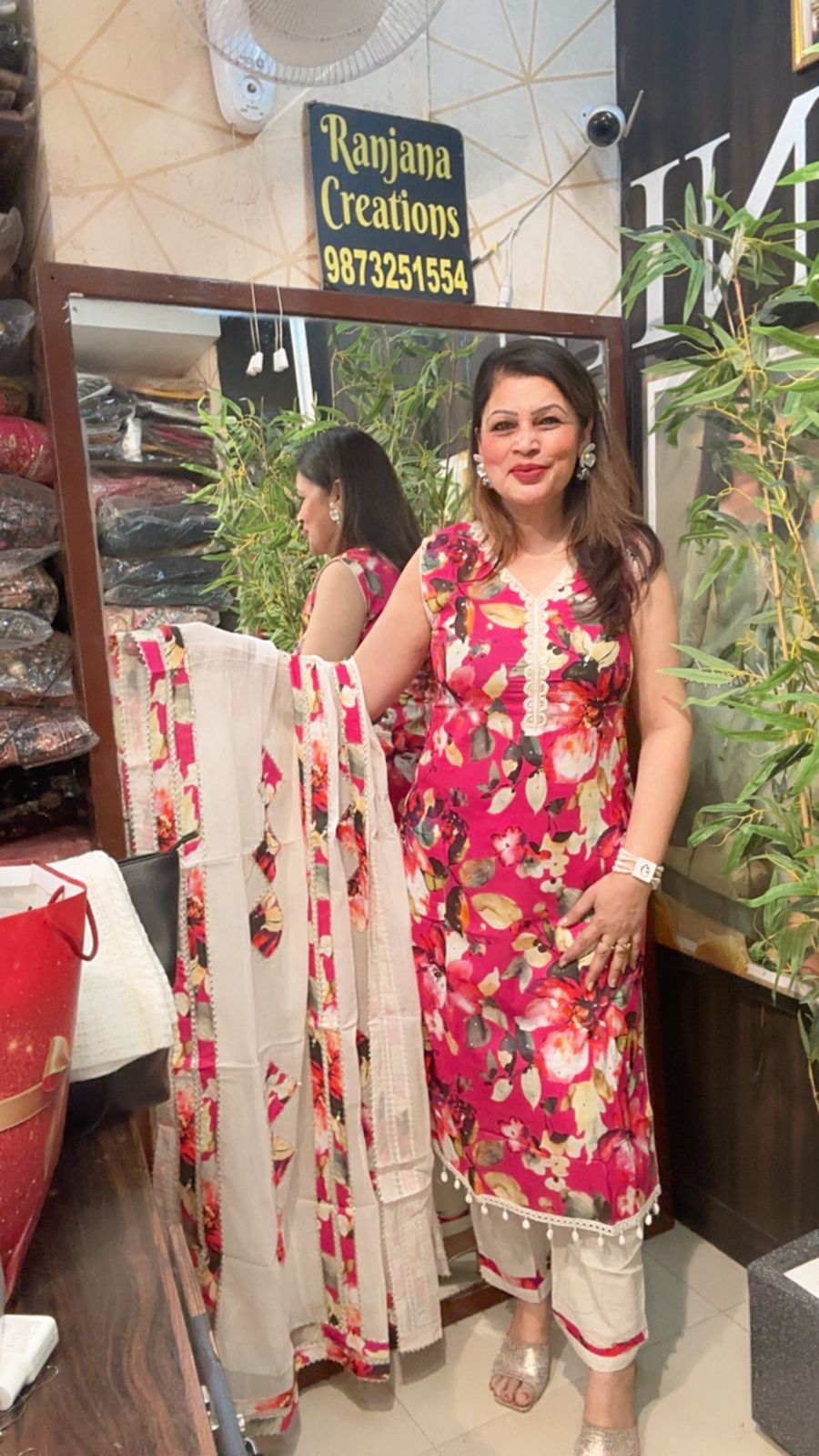 Brighten your wardrobe with this vibrant floral printed suit set — the perfect blend of elegance and comfort. Designed in a fresh pink floral pattern, this outfit is ideal for casual outings, festive gatherings, and day events.