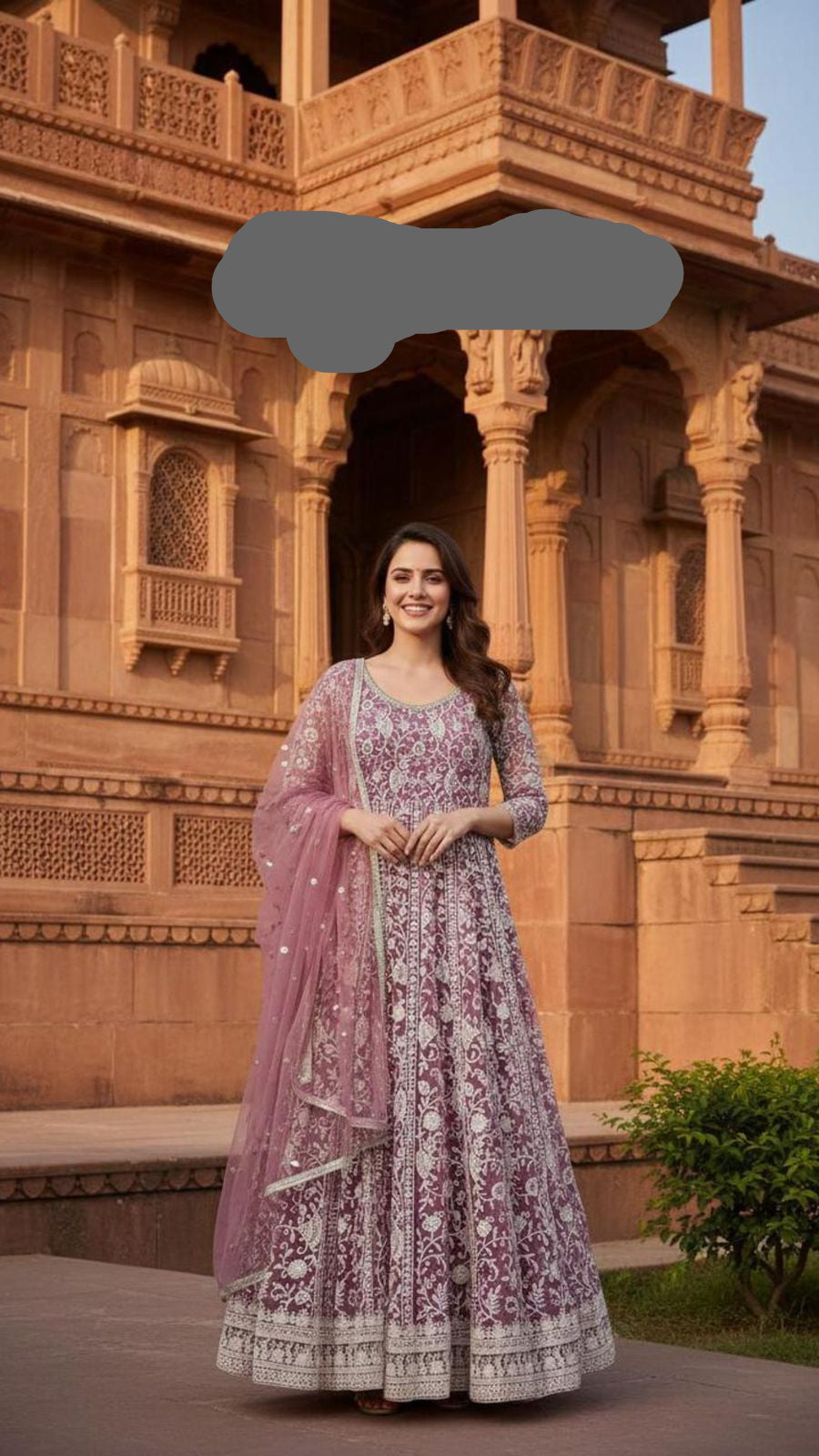 Title: Exquisite Mauve Heavy Embroidered Anarkali Gown with Net Dupatta